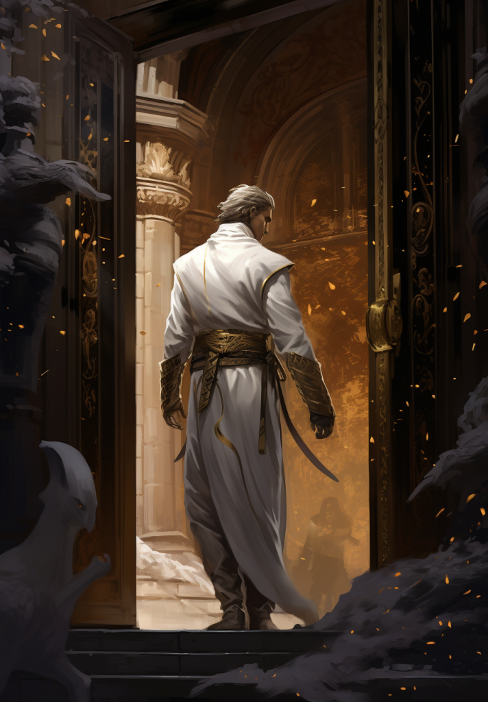 Valeria’s lips curled in irritation. With a flick of her fingers the heavy oak door flew open. A man dressed in white linens stood silhouetted in the entryway. The kindness in his eyes shown a radiance on his face.